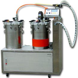 V. Vacuum Degassing: Vacuum pump is utilized for material tank de-gassing and for vacuum suction refill. |